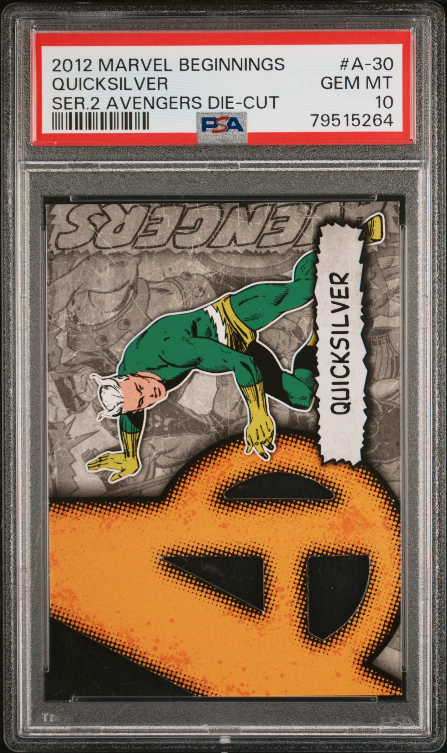 2012 MARVEL BEGINNINGS SERIES 2 AVENGERS DIE-CUT QUICKSILVER #A-30 - PSA 10
