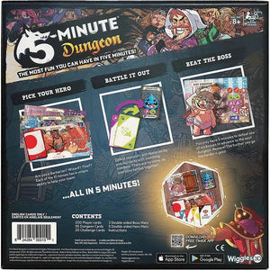 5-Minute Dungeon is a chaotic, co-operative, real-time card game in which players have only five minutes to escape the dungeon! Communication and teamwork are critical to survival because there's no time to form a carefully considered plan - and no predicting what dangers lie ahead! This game is highly rated with Board Game Geek and Tom Vasel calls it a winner, so it's Dice Tower approved! Note that this game can take up to five minutes to play in one round against the first boss, however, there are several bosses to beat until you get to the Dungeon Master. Thus, the game can take from 5 minutes to 30 minutes depending on whether you win or lose against a boss and what your group decides to do.