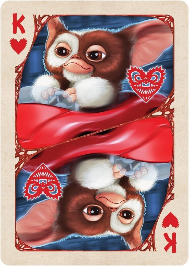 A custom deck of unique playing cards based on the hit 1984 movie, GREMLINS. This deck contains 54 custom cards manufactured by the USPCC. Unique court cards, gaffs, and jokers bring GREMLINS to life right in your hand. Pick one up for the GREMLINS fan in your life.
