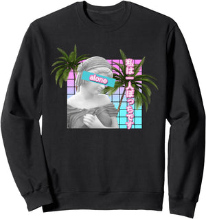 Alone Vaporwave Statue Meme Gift. Anti-Social Japanese Text Sweatshirt