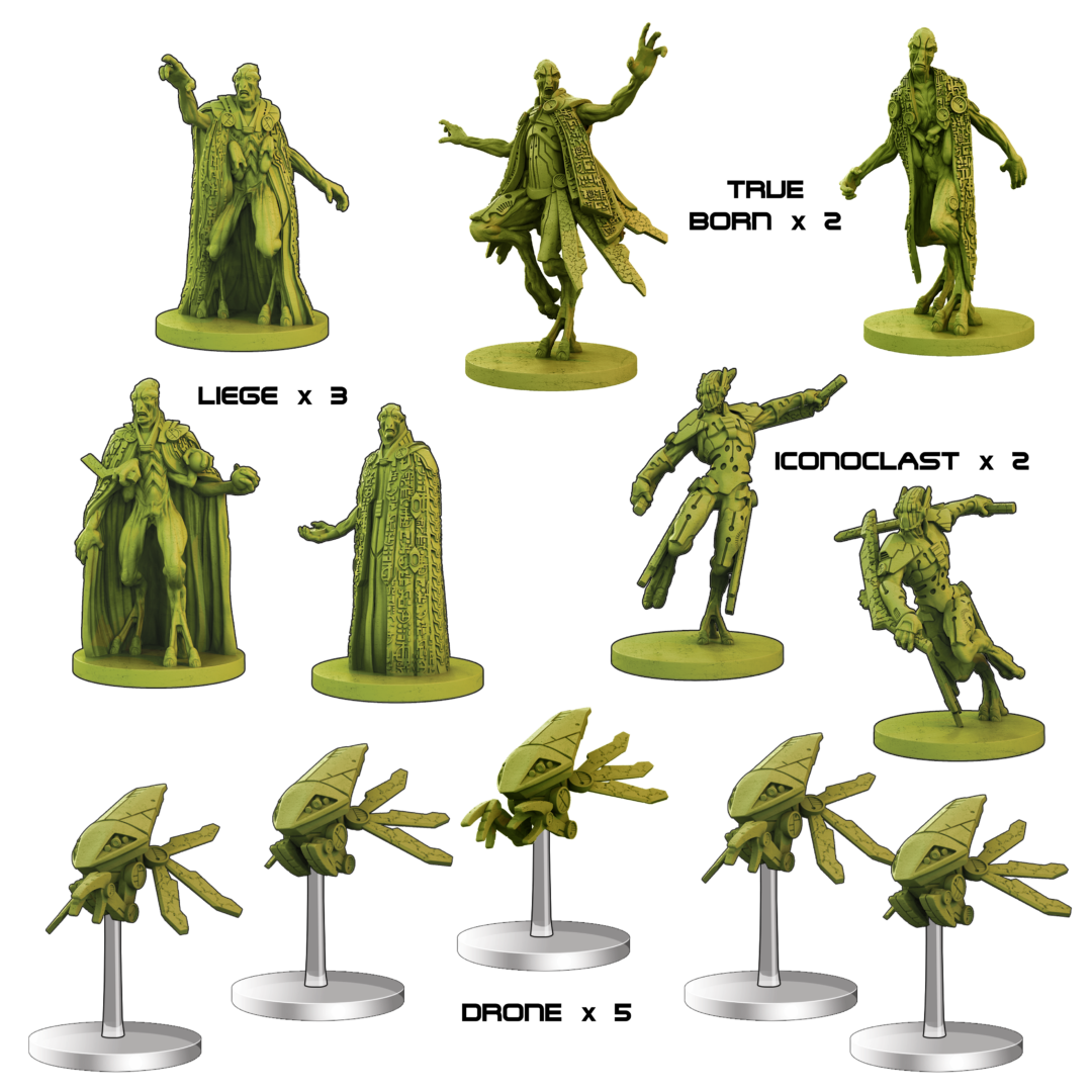 Core Space: First Born is a solo/co-operative sci-fi miniatures game in which your band of Traders venture into the temples of the First Born, a fanatical alien species that do not welcome intruders!