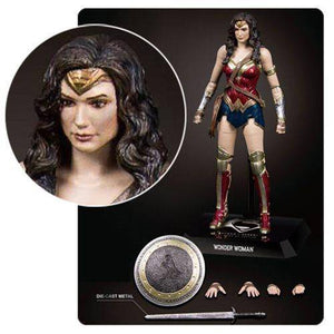 The 8-inch tall action figure is made to human proportions, and has a total of 24 movable joints, allowing you to recreate any number of classic poses. With fine exterior design and detailed professional painting, not only are Wonder Woman's exquisite features and delicate visage perfectly recreated, her battle dress and gear are all faithfully recreated. A die-cast metal version of Diana's Sword and shield are included.