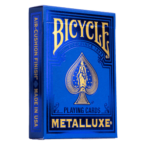 Enhance your card games with Bicycle Metalluxe Playing Cards. These premium cards feature a stunning blue metal foil finish, adding a touch of luxury to your gaming experience. Crafted with premium quality cardstock, they feature an Air Cushion Finish for effortless shuffling and seamless handling, enhancing your overall gameplay and providing a professional playing experience. These cards are not only perfect for various card games, such as poker, bridge, and blackjack, but also for performing captivating magic tricks. Perfect for collectors, the eye-catching metal foil design makes them a standout addition to any playing card collection. Upgrade your game night and enjoy endless hours of entertainment.