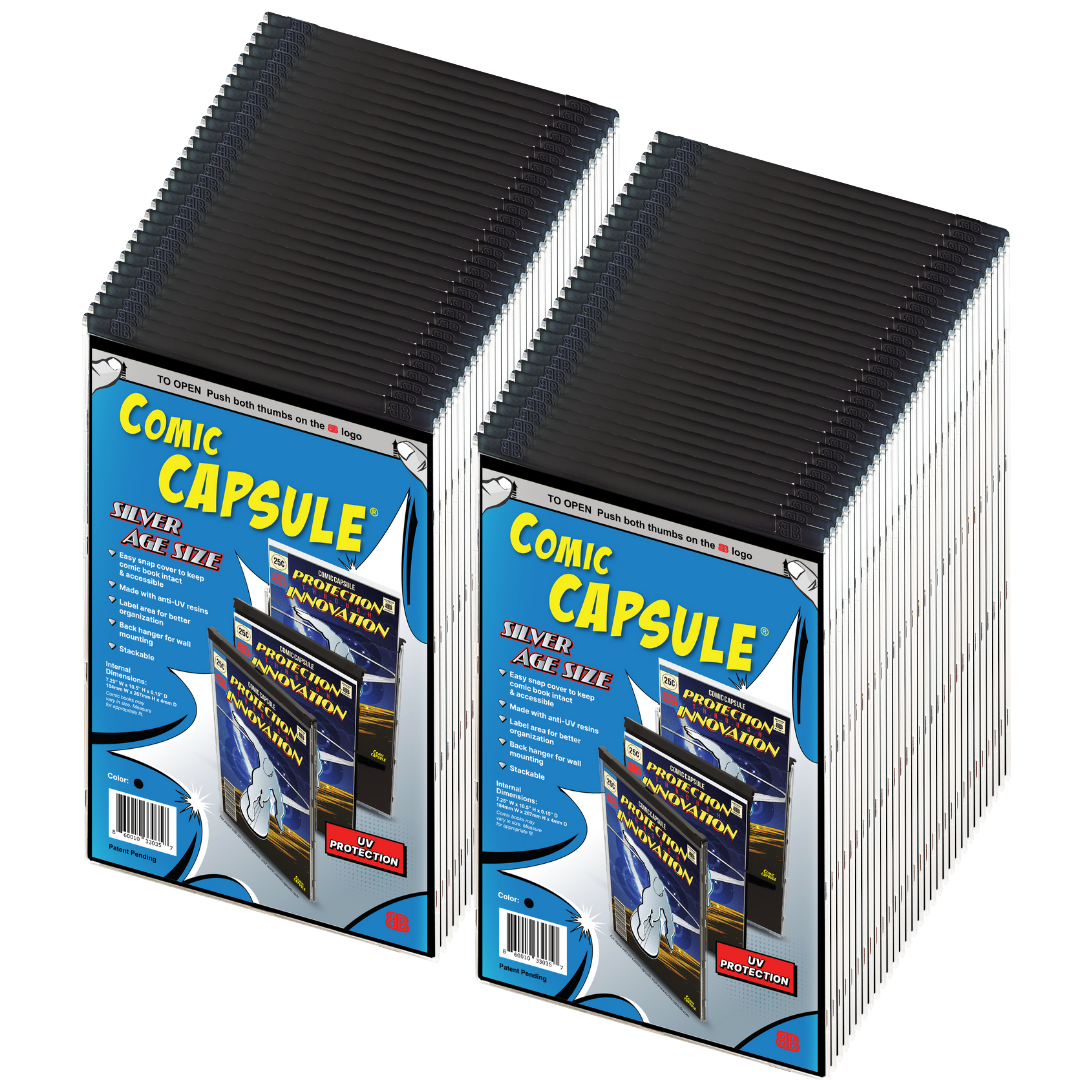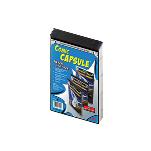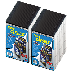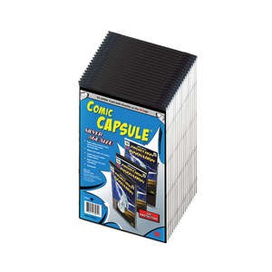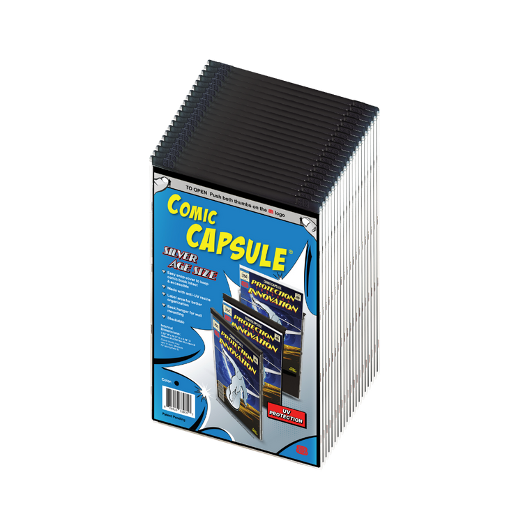 Our top-tier ComicCapsule, now with Silver Age Size and with a black back cover, the premier comic book protector designed to safeguard your prized collection with unparalleled precision. Crafted meticulously for durability, our ComicCapsule offers an impenetrable defense against dust, UV, and wear, ensuring your comics remain in pristine condition whether you choose to display or store your comics.