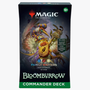 In Commander, four players come together to show their strength and strategy, with one player coming out on top. Each 100-card ready-to-play Bloomburrow™ Commander Deck makes it easy for Commander fans in your store to grab a deck and play right away.