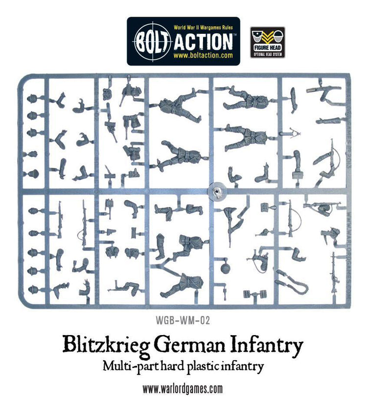 - Enough plastic components to make 30 German infantry miniatures - Including a host of options to allow for different weapon configurations and command models.