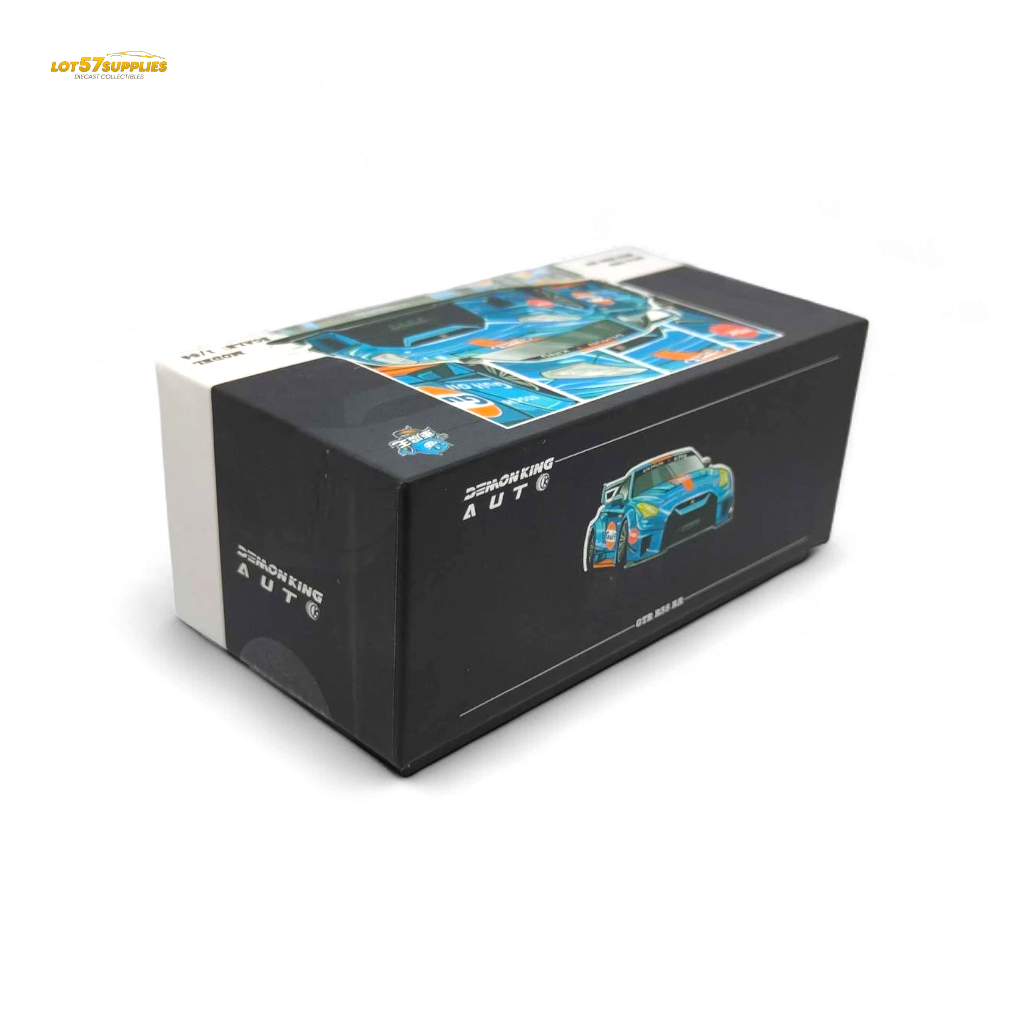 Turn heads with the Demon King Auto LBWK Nissan GT-R R35 — Chrome Gulf Edition (1:64). This diecast captures the raw power and aggressive styling of the Liberty Walk GT-R, finished in a striking chrome Gulf livery that shines from every angle.