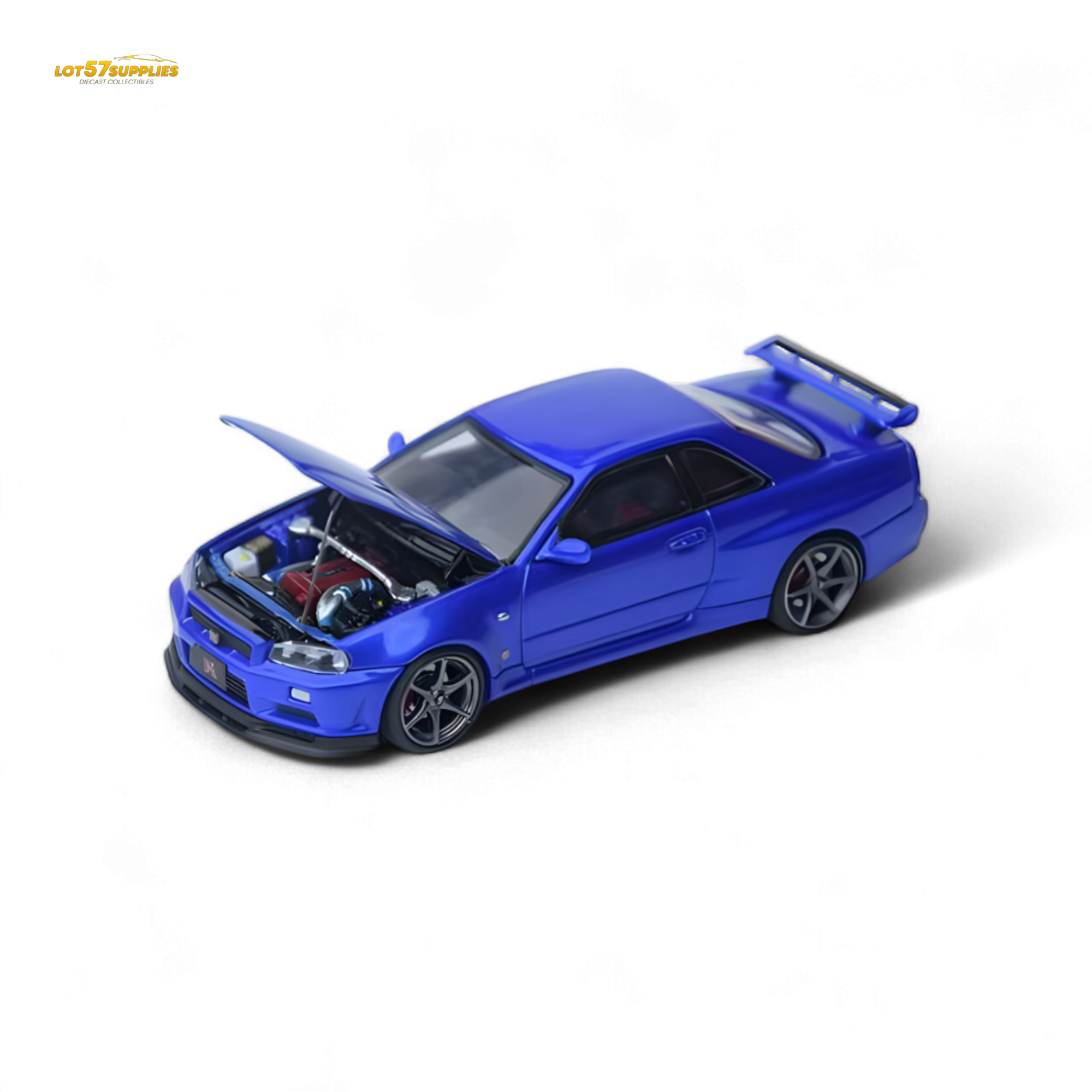 Focal Horizon brings you the Skyline GT-R R34 V-SPEC-II in stunning Bayside Blue, masterfully recreated in 1:64 scale.
