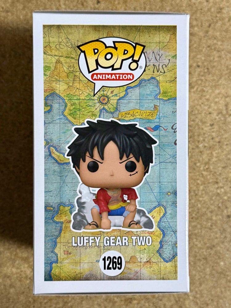 The Funko Pop! Animation Luffy Gear Two #1269 is a vinyl figure of Monkey D. Luffy from the popular anime series One Piece. This exclusive collectible comes in its original packaging, making it a valuable addition to any animation collection.