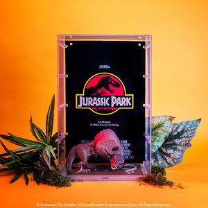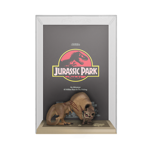 Jurassic Park shook cinemas around the world upon its release in 1993. Collect one of the most recognizable movie posters with the Funko Pop! Movie Poster Tyrannosaurus Rex and Velociraptor! This special collectible features the Jurassic Park movie poster art and Pops! acting out an iconic scene, all prepackaged in a protective case that can be hung on your wall! Complete your movie memorabilia collection with the Pop! Movie Poster collectible. Vinyl figures are fixed in their case, and are approximately 5.5-inches tall. Approximate dimensions of protective case: 11βW x 17βH x 3.25βD