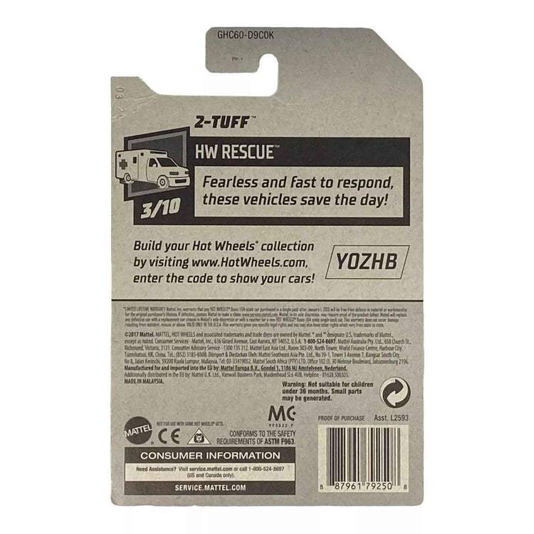 Hot Wheels 2-Tuff is not just a toy; it's an exhilarating pathway to adventure and excitement for kids and collectors alike. With its unique design and robust features, this product is a standout in the Hot Wheels lineup. Each model in the Rescue Series, including the 3/10 variant, showcases the thrilling world of rescue operations combined with the unmatched speed and style that Hot Wheels is known for. Dive into the thrilling world of Hot Wheels 2-Tuff and experience unparalleled play experiences.