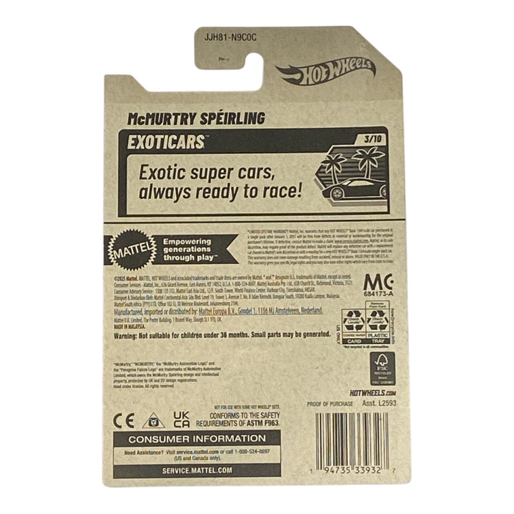 The 2026 Hot Wheels McMurtry Spéirling Exoticars 3/10 electrifies your collection with record-shattering track tech in stunning detail – a must-have for future-forward diecast fans!