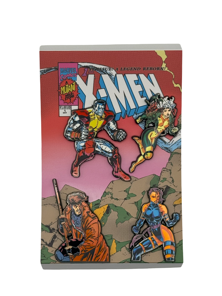 Relive the iconic era of Jim Lee's X-Men with this Jim Lee X-Men #1 4 Pack Exclusive Enamel Pin Set! This meticulously crafted collection features 13 exclusive enamel pins, each based on the unforgettable X-Men characters as they appeared on the legendary X-Men #1 (1991) facsimile covers by Jim Lee.