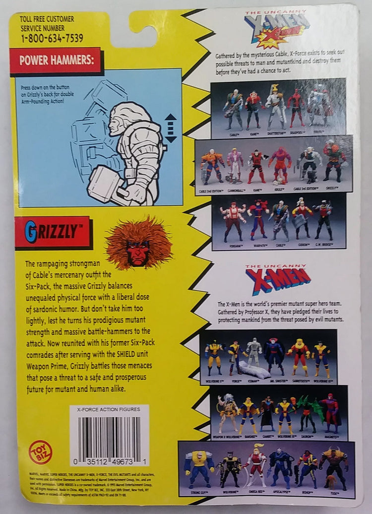 1993 Marvel action figure from Toy Biz - Grizzly from X-Force. Sealed in original packaging.