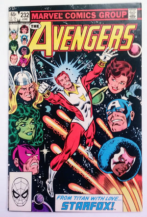Issue #232 of Avengers from Marvel Comics. Eros joins the Avengers as Starfox.
