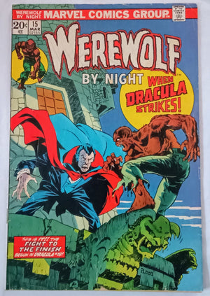 Issue #15 Werewolf By Night from Marvel Comics. Origin of Werewolf By Night. Vs Dracula.