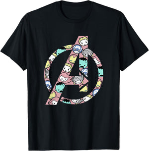 Marvel Kawaii Multiple Chibi Hero Faces Retro Avengers Logo