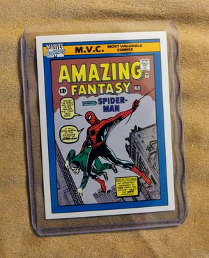 1990 Marvel Universe card by Impel. Card #126 Amazing Fantasy #15. Includes plastic topload card holder.