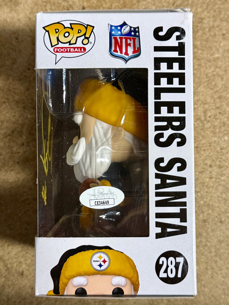 This Funko Pop has been hand-signed by Mason Rudolph and features the festive Steelers Santa design from Pop! Football #287. The signature is fully authenticated by JSA, providing guaranteed authenticity for collectors and fans. The box and figure are in great condition, and the autograph shows beautifully for display.