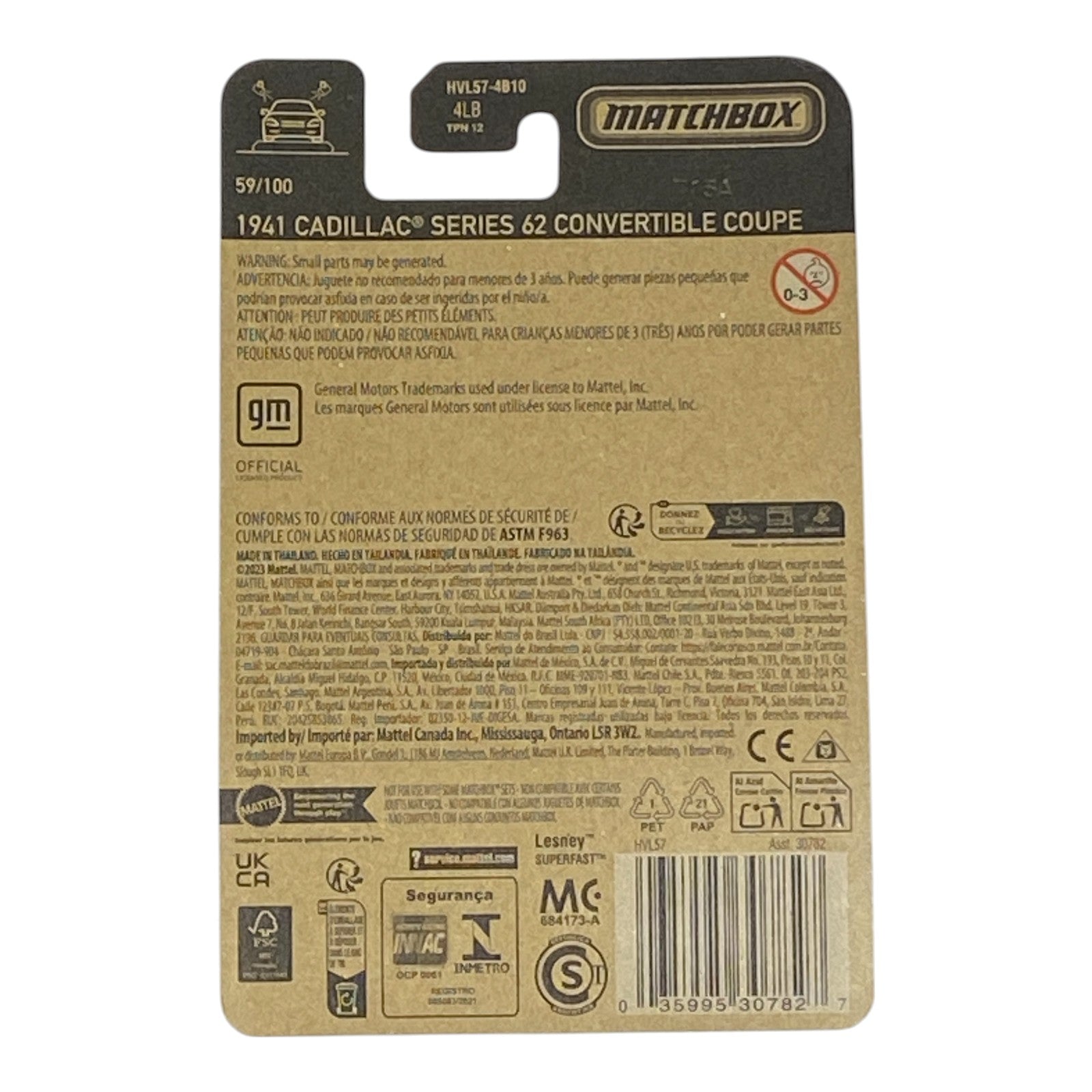 In summary, the Matchbox 1941 Cadillac Series 62 Convertible Coupe 59/100 is a must-have 2024 release capturing vintage luxury in miniature form β add this beauty to your collection now!
