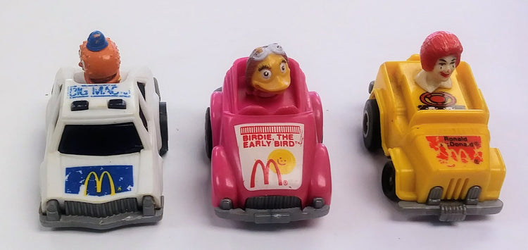McDonald's Happy Meal toy set - 3 cars: Birdie, Ronald, and Big Mac.