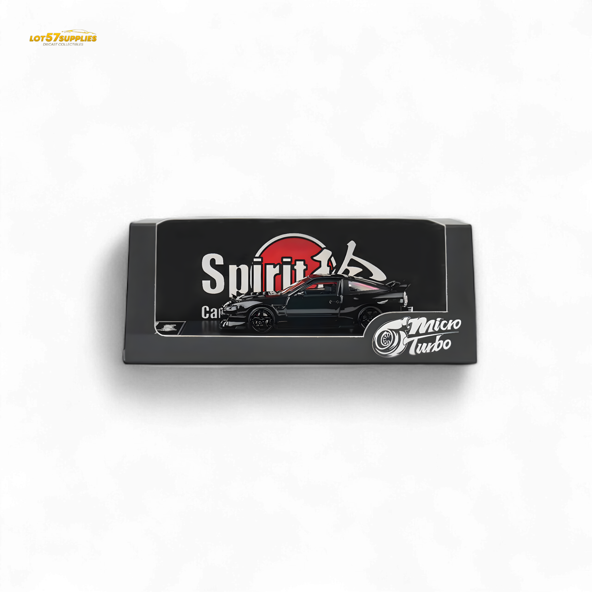 Features the Spirit Rei body kit in a sleek piano black finish, with functional pop-up headlights, bearing wheels, detailed engine bay, custom interior upgrades, and sharp-edged two-tone wheels.