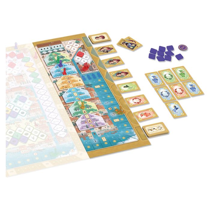 Recruit the help of the authorities, gain influence through their advice, and exhibit your masterpieces! This expansion to Mille Fiori adds a new board to the game and new ways to earn points, earning influence with the Doge, and together, adorning master works. Perfect the art of glassmaking and create the most coveted pieces in the world!