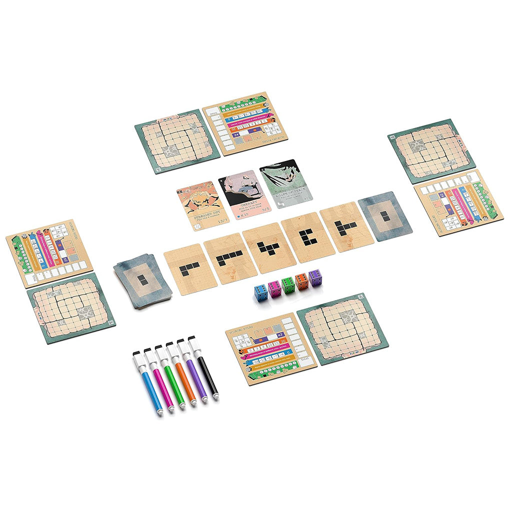 - Vibrant colored dice and markers give a splashy table presence and eye catching endgame results