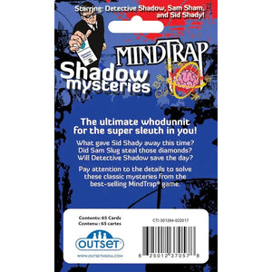 MindTrap® Shadow Mysteries is the ultimate whodunnit for the super sleuth in you! What gave Sid Shady away this time? Did Sam Slug steal those diamonds? Will Detective Shadow save the day? Pay attention to the details to solve these classic mysteries from the best-selling MindTrap® game.