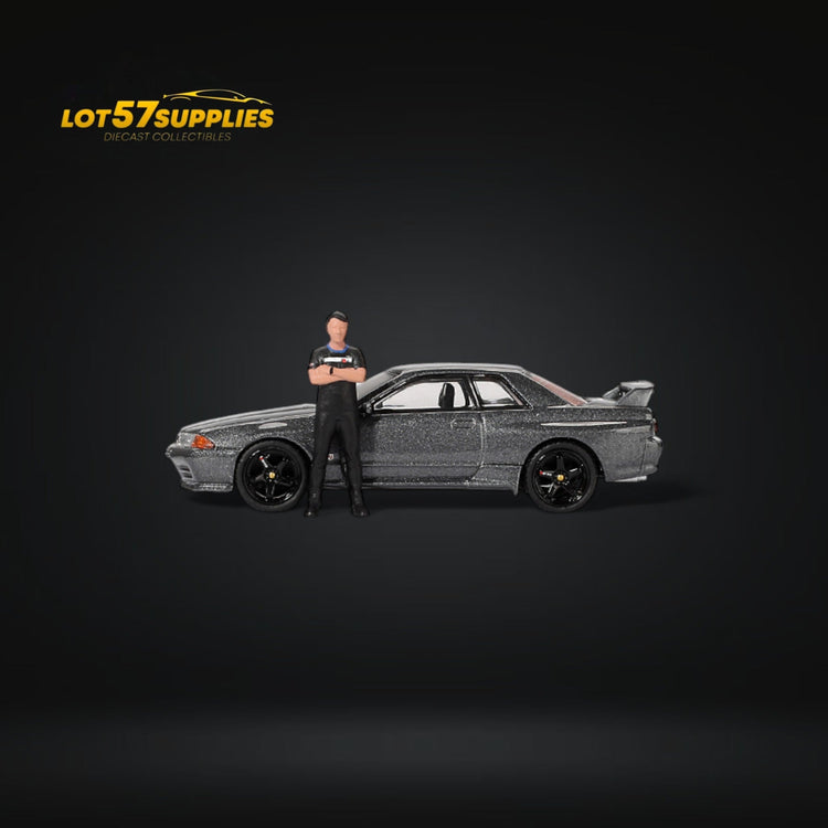 Mini-GT Nissan Skyline R32 Nismo Gunmetal With Matsuda Figure #869 1:64 MGT00869
