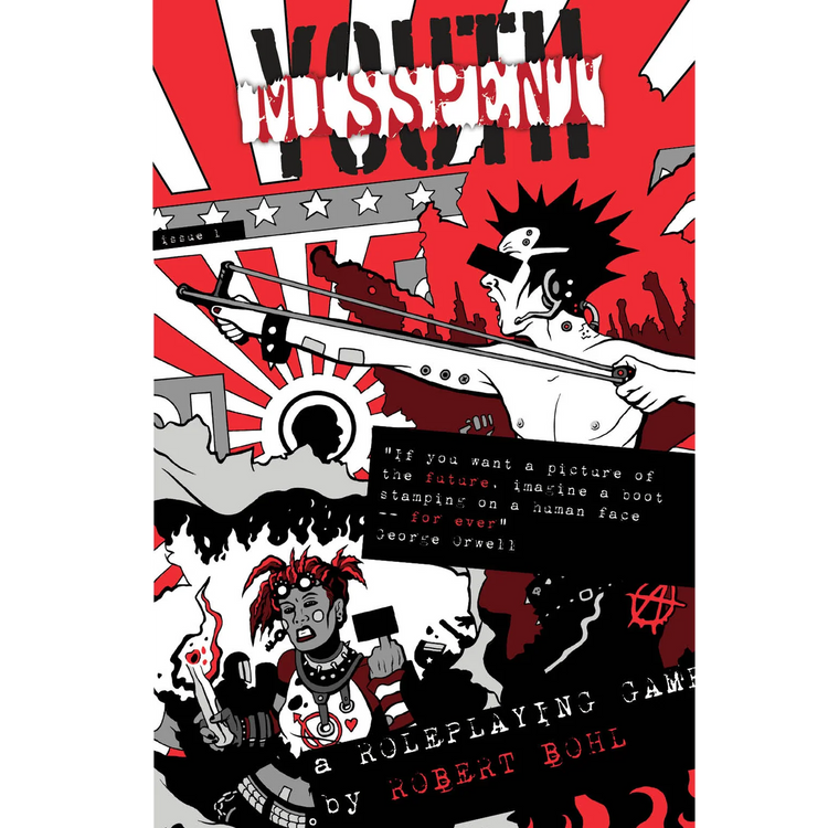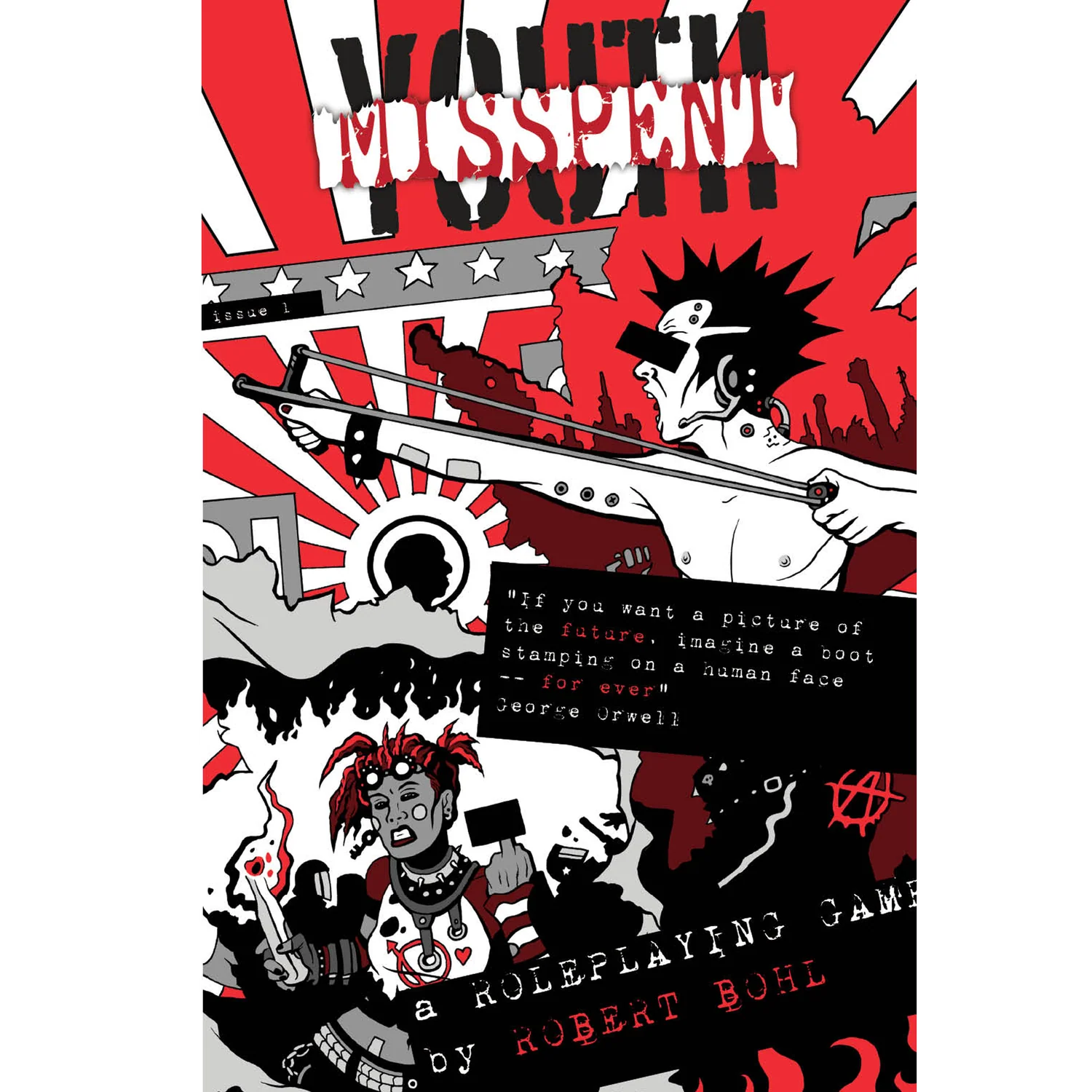Misspent Youth is a tabletop RPG about friendship, standing up to bullies, and changing the world. The game is for 4 to 6 people, one of whom plays The Authority, the force that's making the world a shitty place to live. The others all play Youthful Offenders (YOs), the only ones who can redeem the future from this pack of assholes trying to fuck it up.Ever wanted to play The Hunger Games (but focused on friends), Clockwork Orange (but with heroic droogies), Hackers (but less goofy), Mad Max: Fury Road (but, again, with teenagers), or Avatar: The Last Airbender (but sci-fi)? This is the game for you.