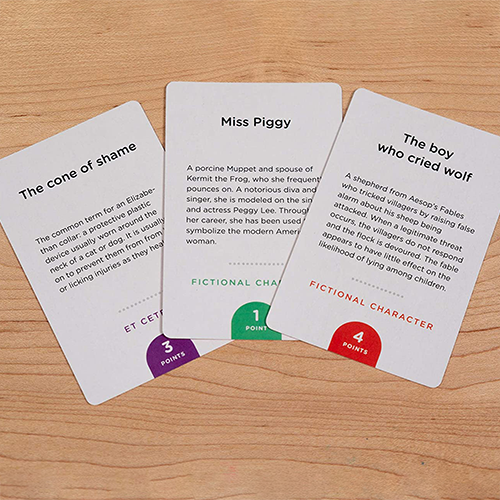 Round 1, say anything about the person, just don’t say their name. Round 2, only use one word to hint at the game. Round 3, perform charades to get your team to guess the name. The cards get shuffled, but don’t change between round 1 and round 3, so creating clever hints in round 1 that can be paired down in rounds 2 and 3 are important for your success!