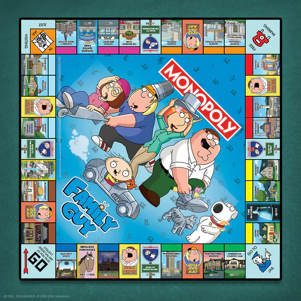 Seize the opportunity to amass a fortune in Quahog! Dive into the world of Family Guy with MONOPOLY®: Family Guy edition. Engage in high-stakes transactions as you buy, sell, and trade Quahog's prime real estate. From McBurgertown to Wild West Ranch – every iconic location is yours for the taking.