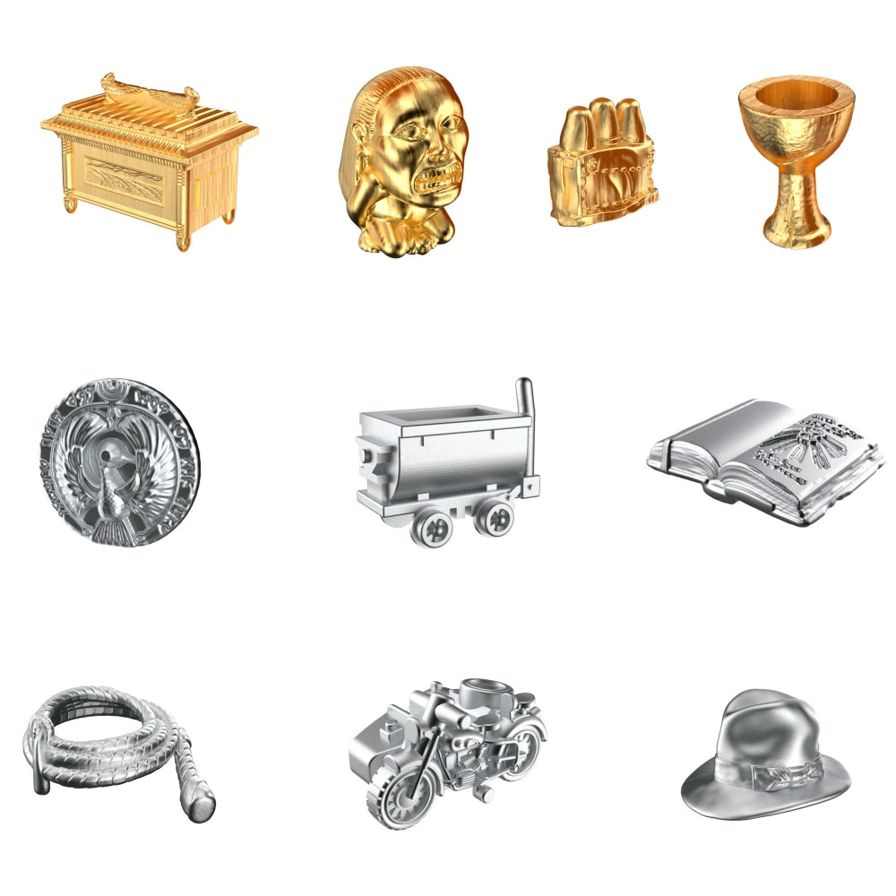 Fortune, glory, and snakes! With Monopoly: Indiana Jones Edition, players imagine traveling the world on Indy's adventures, as they relive memorable moments from the first 3 Indiana Jones films! Race to take control of locations such as the Well of Souls and the Temple of Doom, secure Jock's biplane and other aircraft, and chase down precious artifacts, like the Golden Idol, the Holy Grail, and more. Along the way, try to overcome booby traps, spiders, and snakes. The last player with money when all other players have gone bankrupt wins! For 2 to 6 players, this indoor family game is a great gift for fans of Indiana Jones movies and the Monopoly game, Indiana Jones collectors, and kids ages 8 and up.