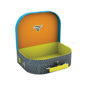 - Rigid box with handle and metal latch.