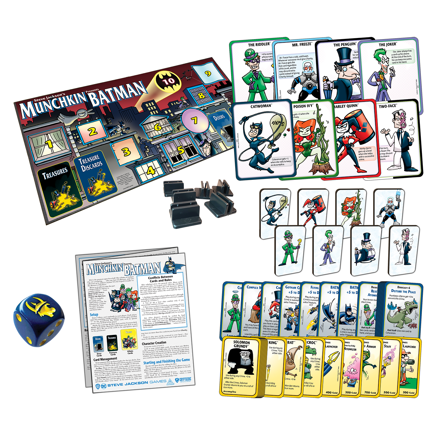 It’s the Caped Crusader vs. the Masters of Mayhem! The criminals of Gotham City are competing to see who is the greatest Super-Villain of all! Play as a classic bad guy and battle against your competitors to commit crimes, foil Batman, and escape Arkham Asylum. First one to Level 10 rules Gotham!