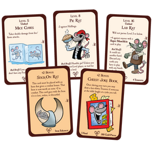 Munchkin Rats introduces 30 new cards to add resources, rapacity, and of course, rodents to your game. Thirteen of those cards are monsters, and the rest are packed with rat-ical Items and Curses that you'll love!