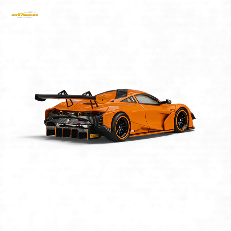 McLaren's track weapon in the brand's signature Papaya Orange. CM Model delivers race-accurate proportions of the 720S GT3X with its aggressive aero package, competition livery, and track-focused stance. Limited edition release featuring detailed engine bay, authentic racing wheels, and the distinctive GT3X bodywork that dominates endurance racing.