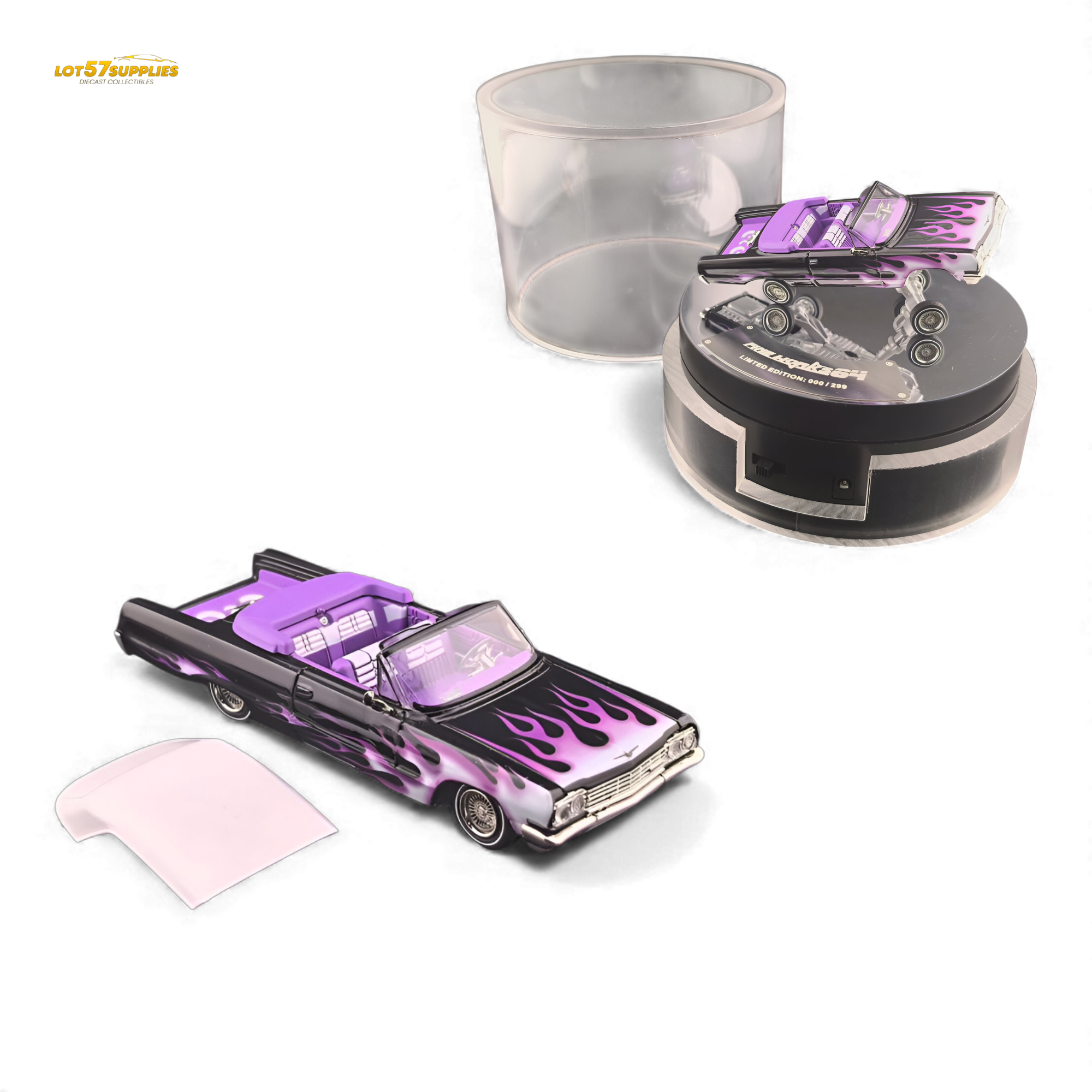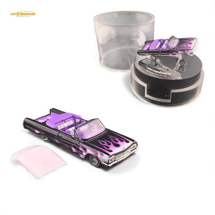 Custom artistry meets premium execution. The Luxury edition Ghost Flame Impala features Fine Works64's most detailed work - upgraded chrome, enhanced flame graphics, and show-level finishing. This premium build celebrates traditional hot rod art on one of lowriding's most iconic platforms. Limited 1:64 scale collector piece.