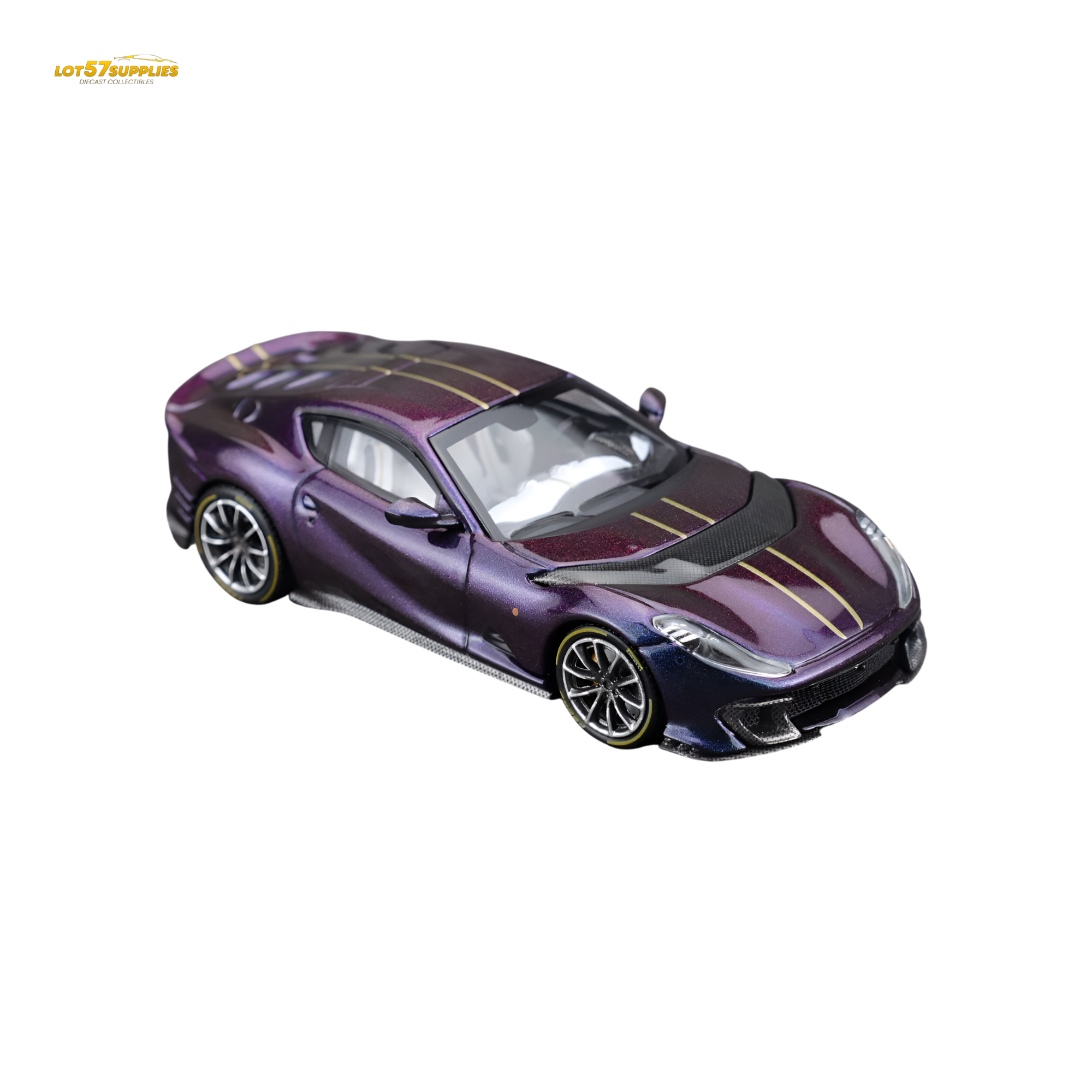 TOC 1:64 Ferrari 812C Chameleon Purple • Color-changing paint with extremely fine grain • White interior • Gunmetal gray wheels • Expected: January 2026 ETA subject to change - supplier controlled. Only order if comfortable with potential delays.