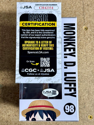 This vinyl figure is part of the Pop! product line and features the character from the One Piece franchise. The autographed item comes in its original packaging, making it a unique and collectible piece for fans of One Piece and collectors of Funko Pop! figures.