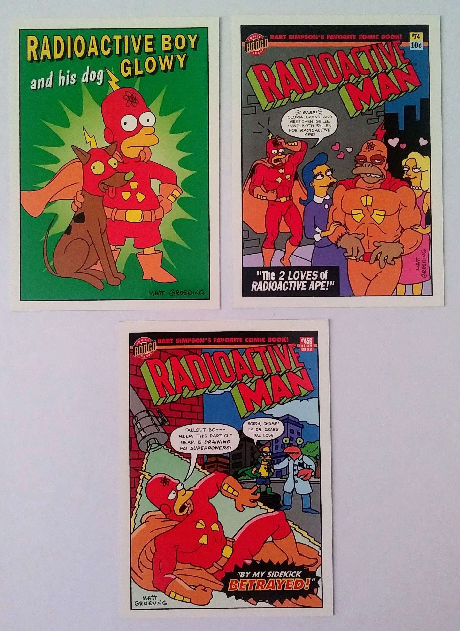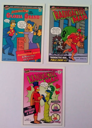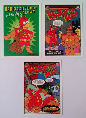 Complete set of all 10 Radioactive Man cards from the 1993 Simpsons Trading Cards by Skybox.