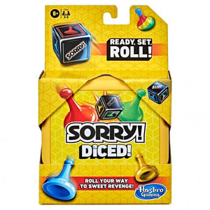Ready, Set, Roll! It's a different way to play the Sorry! game. In this edition of the game, individual player bases replace the gameboard, and players roll the dice to sweet revenge β and win! The game includes 3 dice that determine a player's luck as they try to get a complete color set of pawns to their Home wedge to win. Sorry! Diced is a compact and portable game making it a great game for travel and for on-the-go play. It's easy to learn, and if your kids are looking for a quick game, it can be played in under 20 minutes.