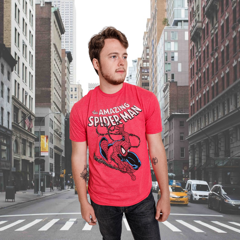 Spider-Man Spidey Swinging Marvel Comics Adult Graphic T-Shirt