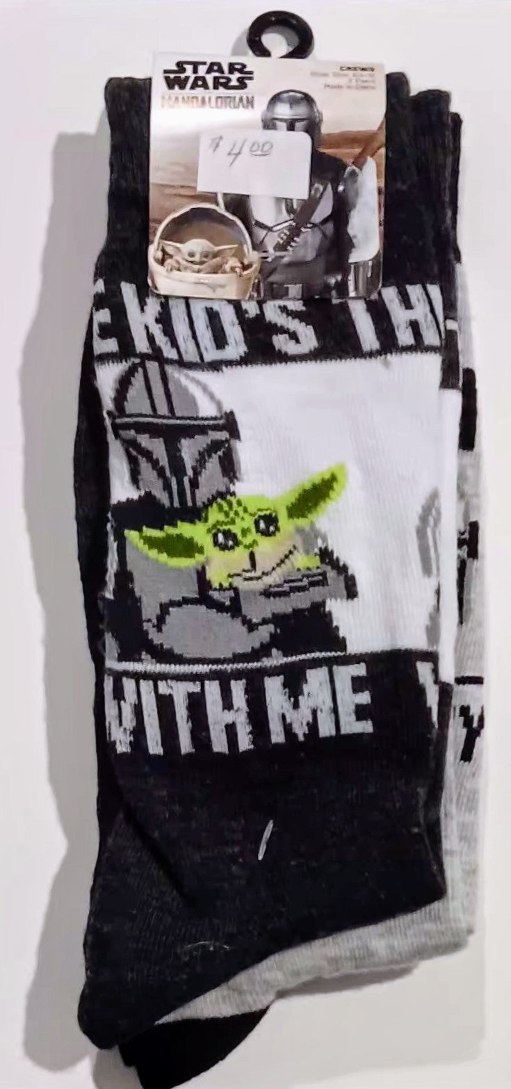 Star Wars Socks - Mandalorian Crew Socks. 2 pairs. Shoe Size 6 1/2-12.