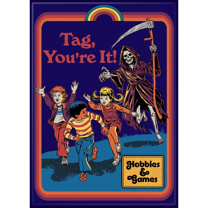 The Steven Rhodes Tag, You're It! Magnet from Ata-Boy is not just an everyday magnet. With dimensions of 2.5" x 3.5", it's the perfect size for any magnetic surface.Β