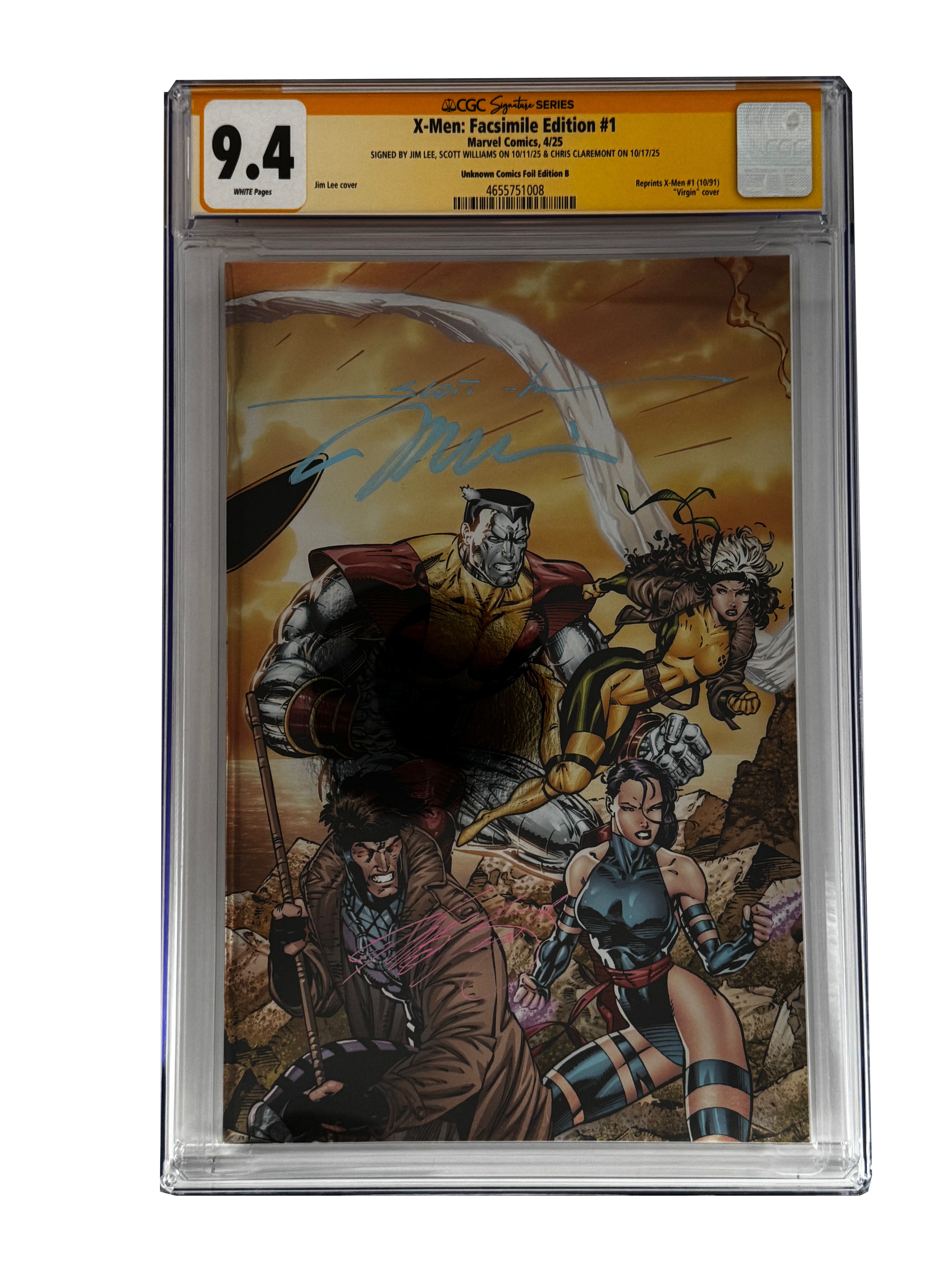 [SIGNED CGC YELLOW LABEL] [4 PACK 🚨 Limited Edition! 🚨] [FOIL] X-Men 1991 #1 Facsimile Edition Unknown Comics Jim Lee Exclusive Connecting Cover Var (12/2025)