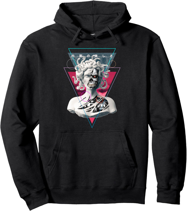 Vaporwave Cyborg Medusa Statue Aesthetic Art Japanese Otaku Pullover Hoodie