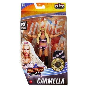 Capture the blowout action of WWE Superstars with this WWE Elite Collection Series 86 Carmella Action Figure! Featuring one of WWE's biggest personalities and champions, this bold and colorful figure is approximately 6-inches and comes ready to wreak havoc right out of the box! Figure has deluxe articulation for multiple ways to pose and play, True FX enhanced facial detailing for life-like authenticity, WWE ring gear and iconic accessories—all with amazing detail capturing the Superstar's unique personality. Get all the WWE Elite Collection figures and let the collecting and battles begin!