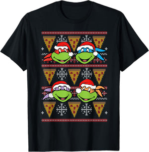 Xmas Ugly Sweater Design Tmnt Heads And Pizza